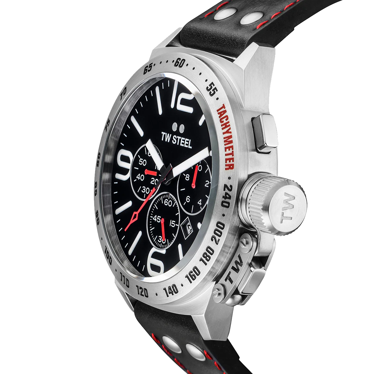 A bold vintage leather strap adorns this striking Canteen Style model. Additional features include tachymeter on bezel with silver eyes.