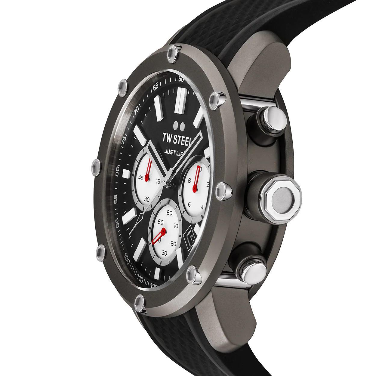 It’s Crunch Time; seize the moment! Designed together with fitness legend Simeon Panda, this Limited Edition timepiece is powered by a big caliber chronograph and features a Reverse Panda dial a 48mm PVD dark titanium coated case, a black silicon strap with dark grey line and two year worldwide warranty.