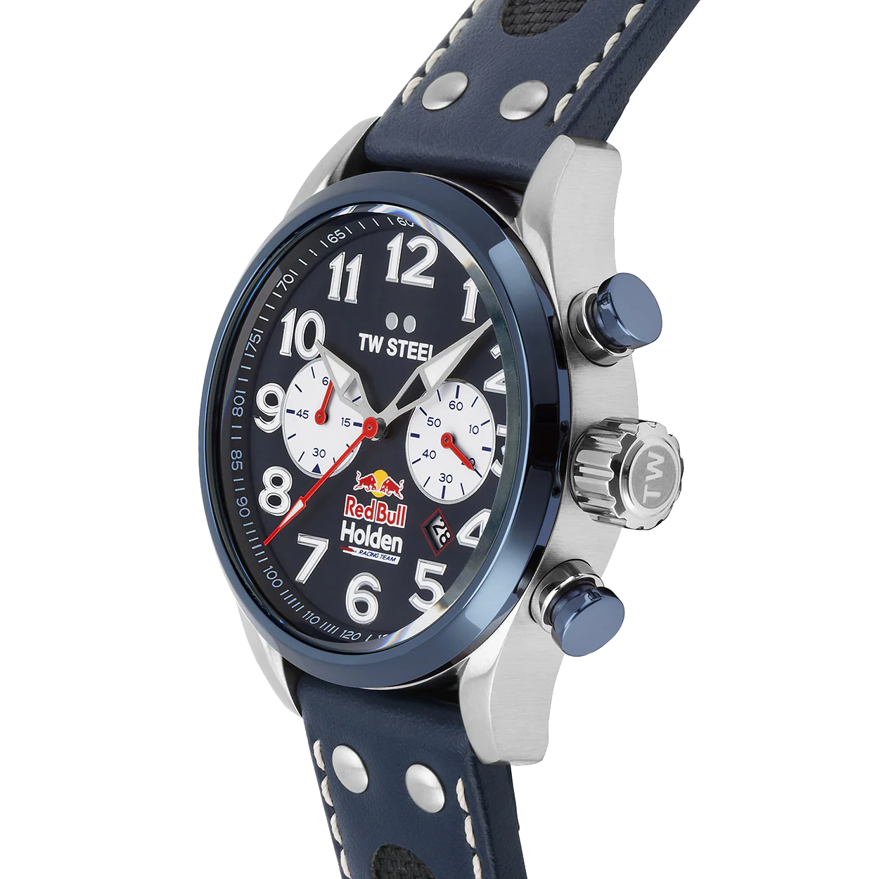 - Blue dial + Red Bull Holden logo