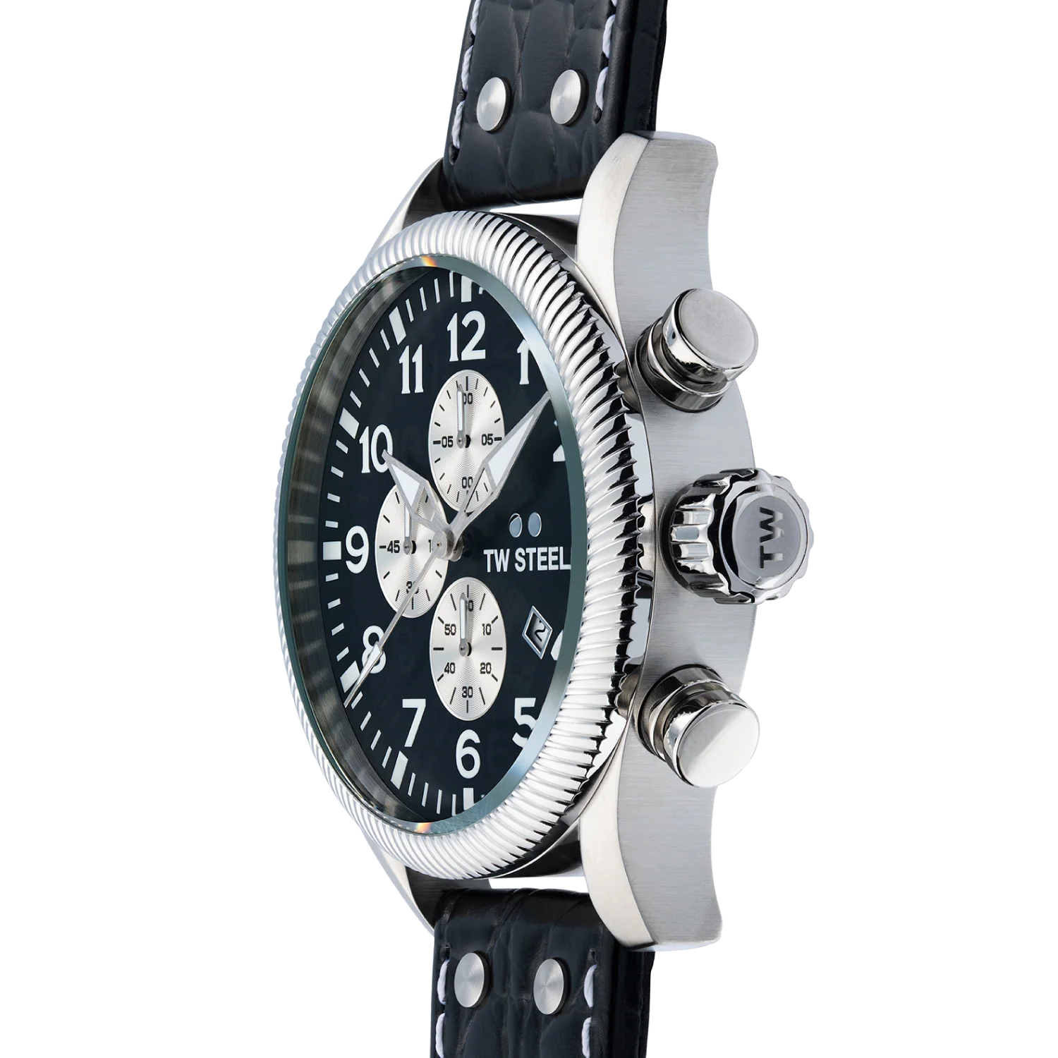Go from A to Bold with this Volante watch. This VS110 is powered by a chronograph movement and features a 48mm steel case, a black sunray dial and a black croco leather strap.